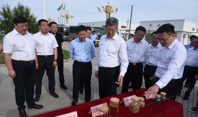 5月30日下午,內(nèi)蒙古自治區(qū)黨委常委、通遼市委書記孟憲東,市委副書記、市長(zhǎng)奇·達(dá)楞太一行到通遼市鴻軒生物科技有限公司調(diào)研指導(dǎo)工作。