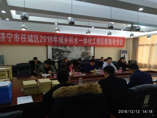 2018年12月12日,濟寧市任城區2018年度城鄉供水一體化工程區級驗收會議在濟寧市任城區水務局會議室舉行,會議由濟寧市任城區區政府辦公室主持召開,設計、施工、監理等相關單位和部門參加了會議。 驗收組察看了工程 ...