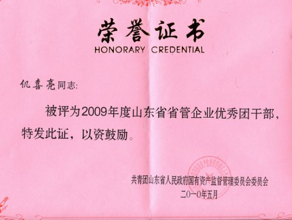 經(jīng)省國(guó)投公司團(tuán)委、黨委推報(bào),省國(guó)資委團(tuán)委評(píng)定,局團(tuán)委書(shū)記仉喜亮在2010年省管企業(yè)“五四”評(píng)先樹(shù)優(yōu)活動(dòng)中被評(píng)選為優(yōu)秀團(tuán)干部。