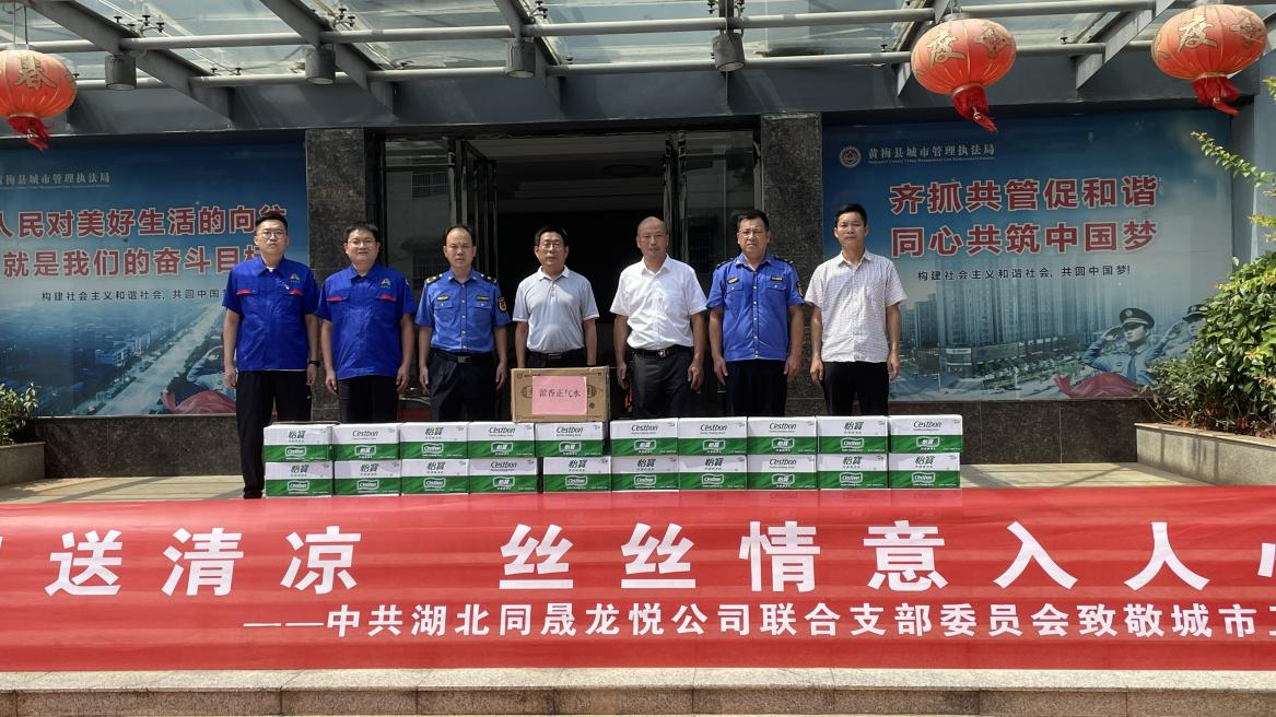 7月28日,為了表達對在酷暑中堅守一線城管執法人員的敬意,湖北同晟龍悅公司聯合黨支部在董事長張峰同志的帶領下,為奮戰在一線的“城市衛士”開展送清涼活動。