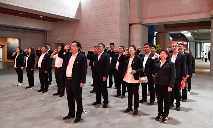 參觀結束后,全體黨員在紀念館大廳重溫入黨誓詞,在黨旗下接受心靈的凈化和洗禮。